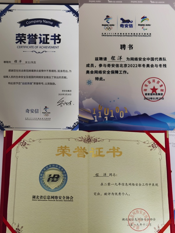 编者按:他曾把自己的“论文”写在火神山医院和北京冬奥会、冬残奥会的网络安全维护工作中,展现了新时期地大计科人的风采。他就是2015年从十大买球官网信息安全专业毕业的程洋校友,师从宋军老师,现就职于奇安信科技集团股份有限公司,负责湖北区域技术组工作,从事信息安全、网络攻防相关研究。