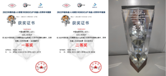 刘袁缘老师和罗忠文老师带领其团队连续三年参与此项赛事,本次比赛团队成员由研究生刘柯君、黄玙璇,本科生朱佳睿、朱轩宇、金子潇、刘腾飞组成。从最开始测量项目的二等奖到如今的一等奖,他们在坎坷中吸取经验,在突破中获得成长,钻研算法、改进代码是他们不断进步的秘密法宝,充分展现了计科学子不断创新、勇攀高峰的拼搏精神。团队成员赛后表示:很开心在本次比赛中获奖,但是我们也有很多不足,使得在比赛中有点措手不及。比赛结束后刘老师引领我们整理回顾,积极总结,完成了一个很全面的技术总结与实战反思,希望可以在以后机器人比赛中继续进步,超越自我,勇夺桂冠。