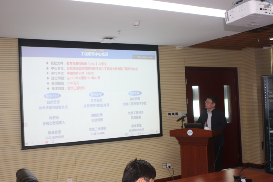 王力哲副校长代表学校致欢迎辞。他感谢教育部科技司高新处领导和专家组对我校科技平台建设的关心、指导和帮助。他表示中国地质大学已开启了建设地球科学领域国际知名研究型大学的新征程,高水平创新平台的建设是学校高质量发展的重要支撑。“自然资源信息管理与数字孪生工程软件教育部工程技术研究中心”汇聚了我校一批长期从事自然资源领域信息化理论方法研究和高新技术研发的高水平研究团队,充分发挥地大学科优势,通过开展自然资源信息管理与数字孪生工程软件核心技术的研发,破解自然资源信息管理关键软件“卡脖子”问题。他希望工程中心通过持续的系统化建设,抢占自然资源信息管理与数字挛生技术制高点,促进“人才链、创新链、学科链、产业链”深度融合,为经济社会高质量发展贡献地大智慧。
