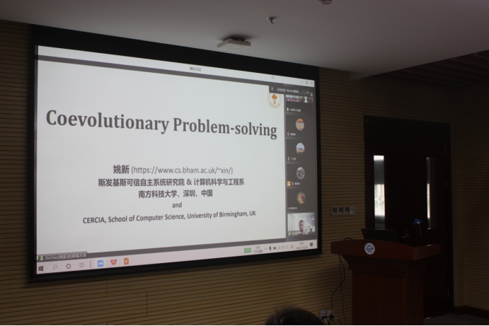 随后,姚新教授、戴光明教授、周爱民教授分别就演化算法的最新研究进展及应用成果作了学术报告。