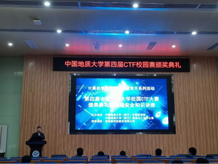 2023年4月9日下午14:30,十大买球的正规网站第四届校园CTF大赛颁奖仪式暨网络安全知识讲座活动在计算机大楼报告厅圆满举行。