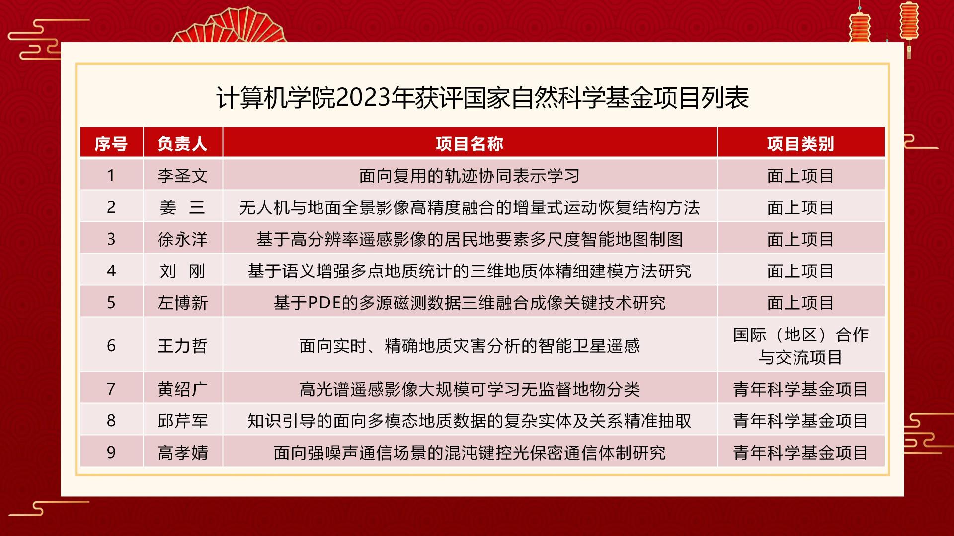 8月24日,国家自然科学基金委员会公布了2023年度自然科学基金集中接收申请项目评审结果,十大买球的正规网站共获得9项资助,其中面上项目资助5项、国际合作项目1项、青年项目3项,获批直接经费348万元。
