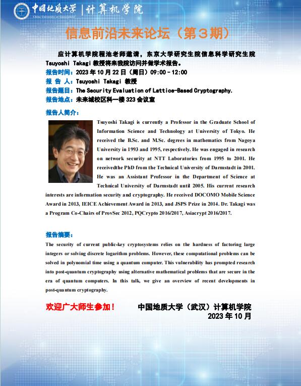 信息前沿未来论坛(第3期):西安电子科技大学陈晓峰教授、东京大学Tsuyoshi Takagi教授、荷兰代尔夫特理工大学Kaitai Liang教授