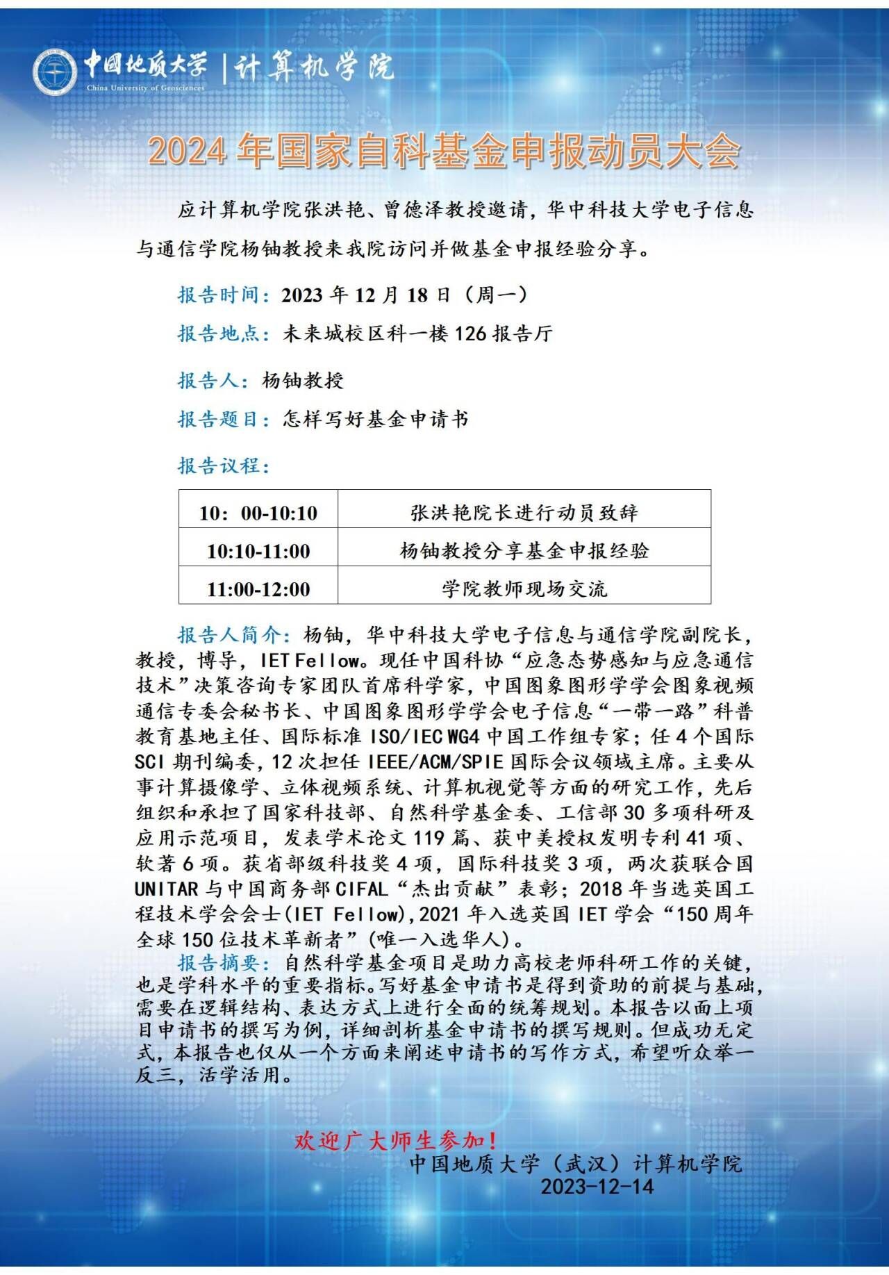 会议通知:2024年国家自科基金申报动员大会