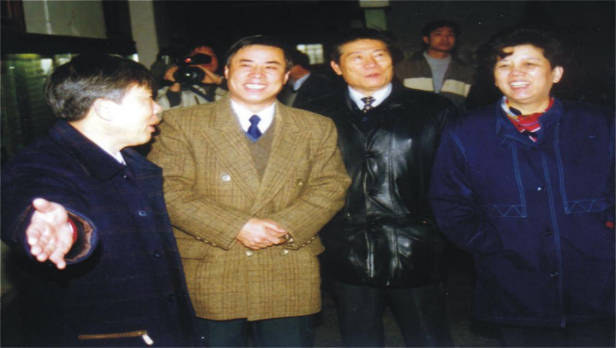 计算机系主任康立山指导参加挑战杯赛的学生(2004年5月)